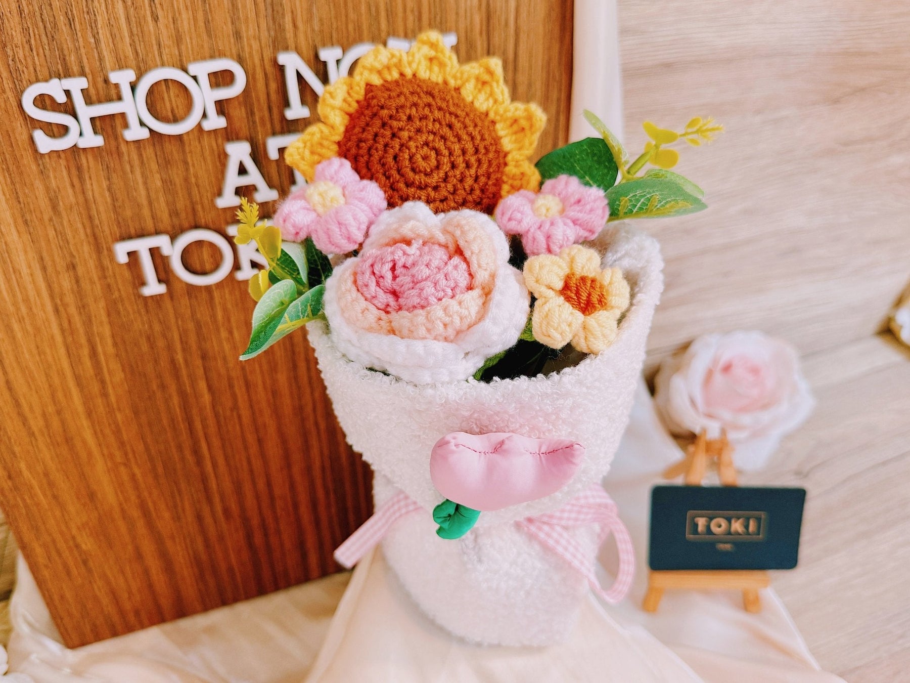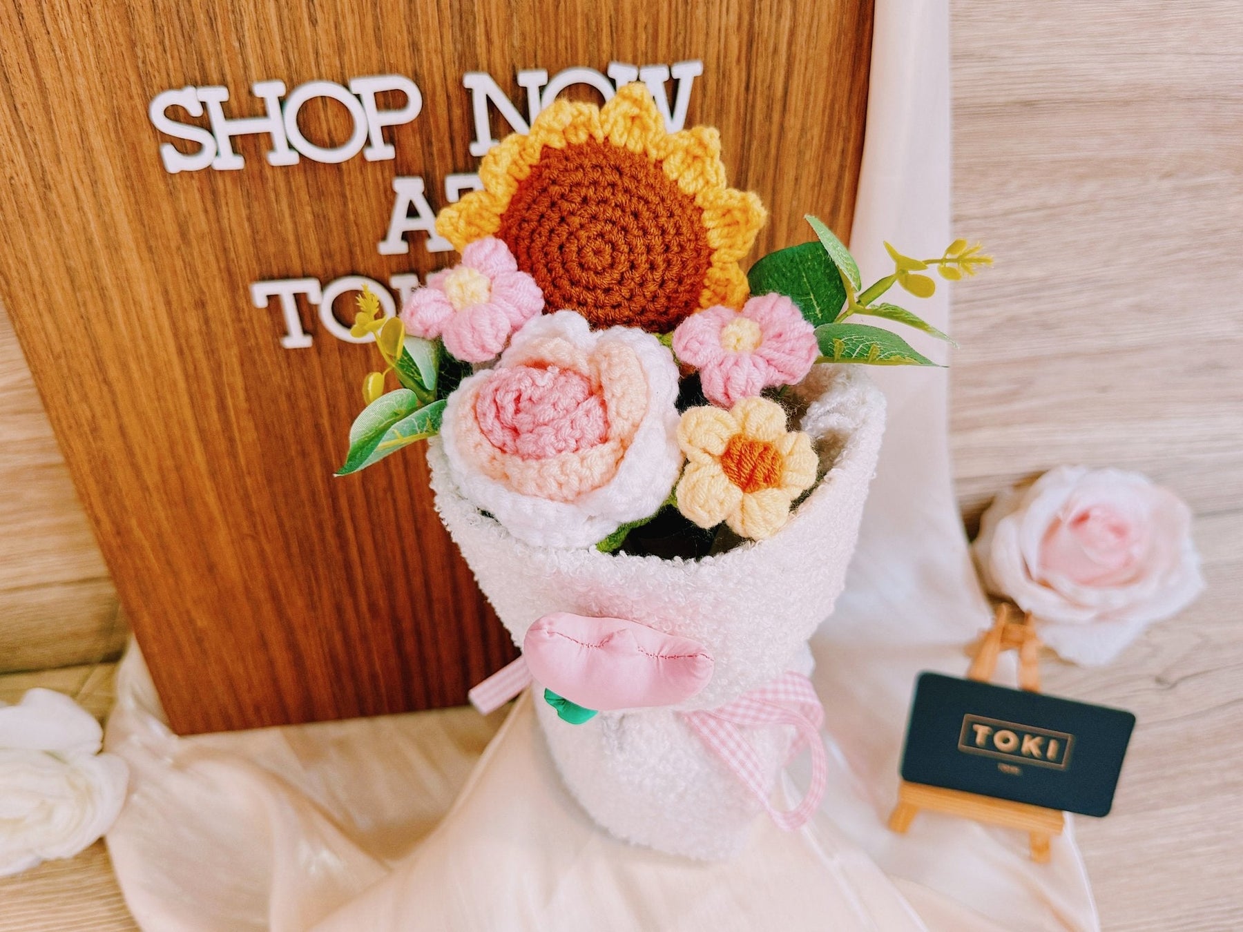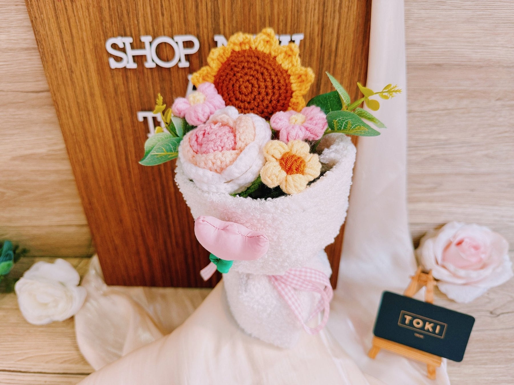 This mini crochet sunflower bouquet includes a cheerful rose and three small flowers. Perfect for children or just to brighten someone's day. Get ready to smile! 🌻🌹💐