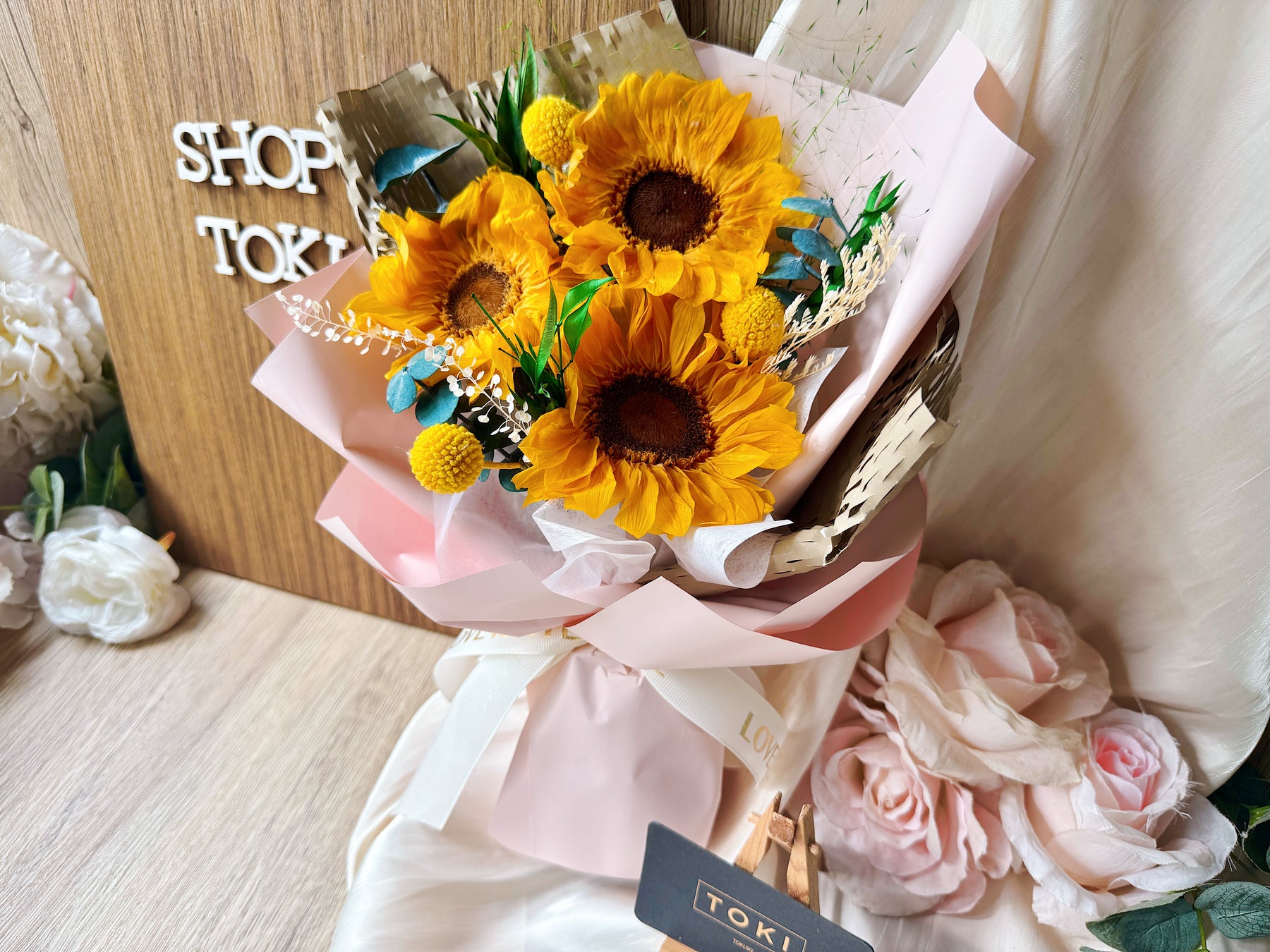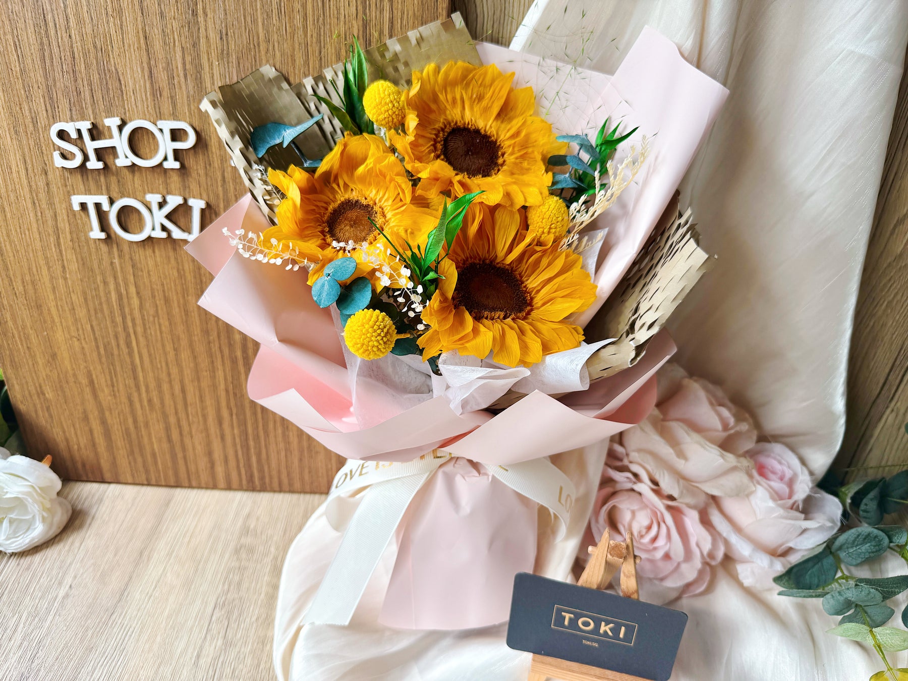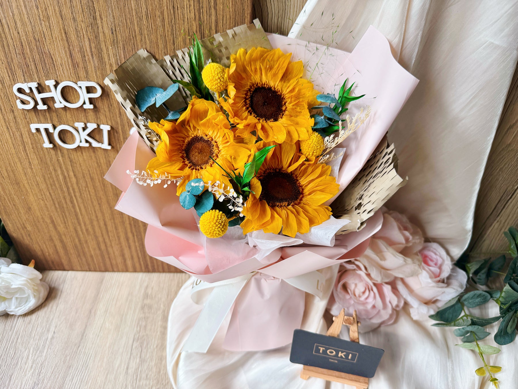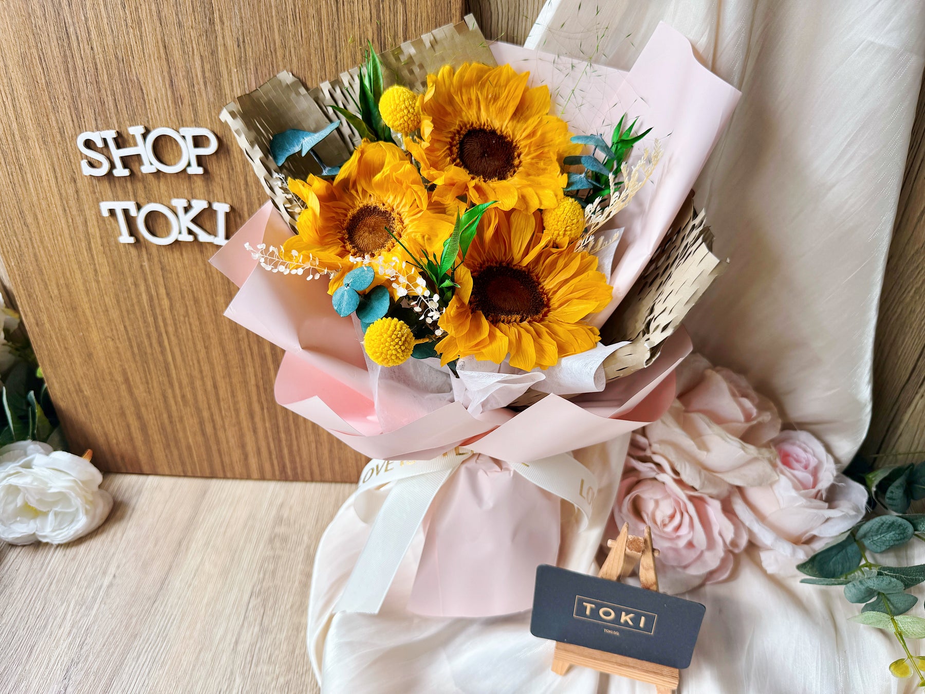 Spread sunshine and cheer with our "Sunshine" preserved sunflower. Made from fresh sunflowers, this everlasting flower is affordable and perfect for graduation or to brighten someone's day. No need to water, just enjoy its sunny charm!